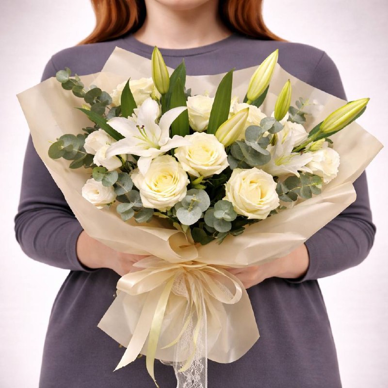 Букет из белых лилий и роз «Светлая элегантность»