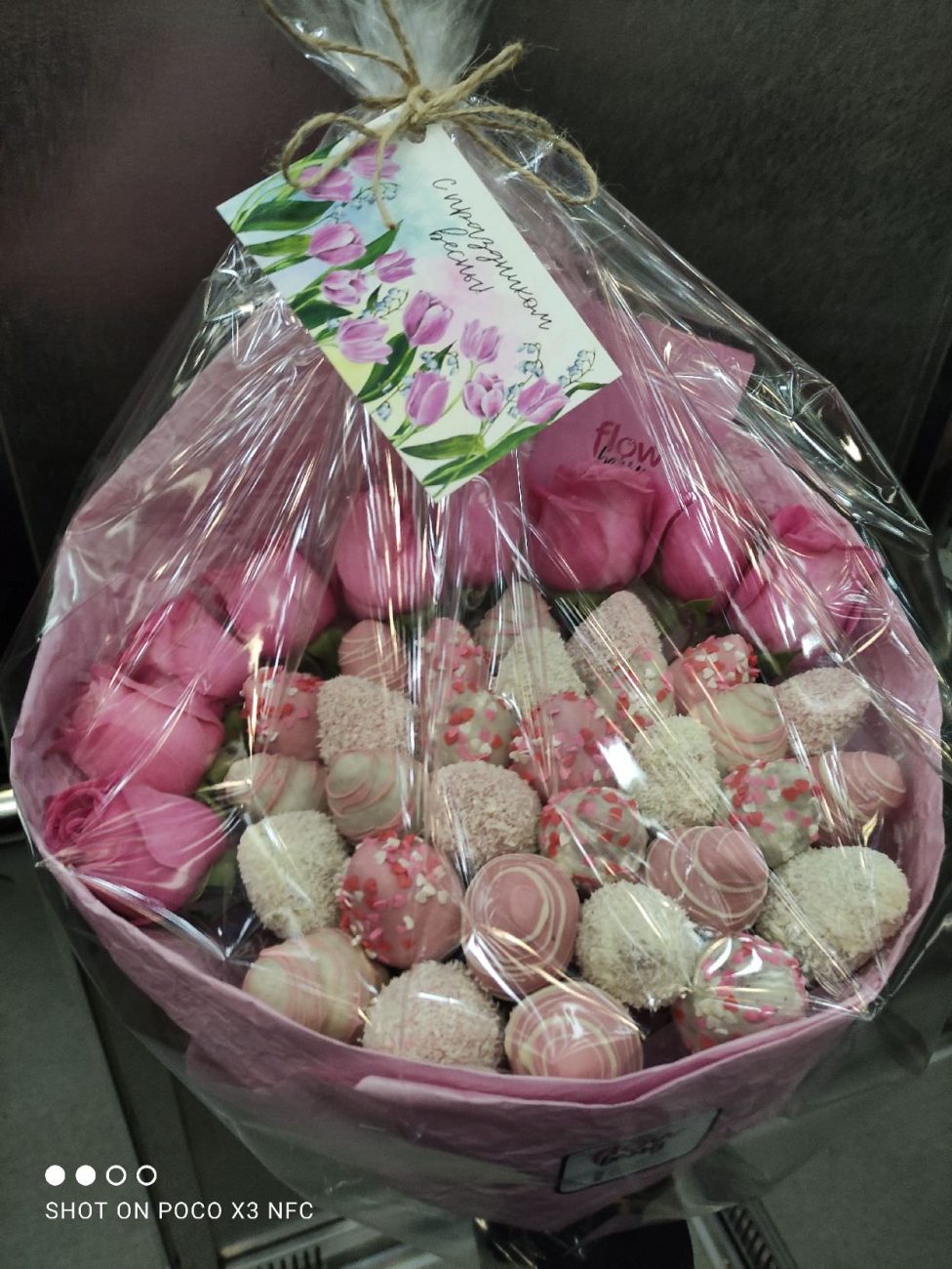 Все сделано замечательно!Полностью совпадает ожидание-реальность!Получатель букета и клубники счастлив!Спасибо💐