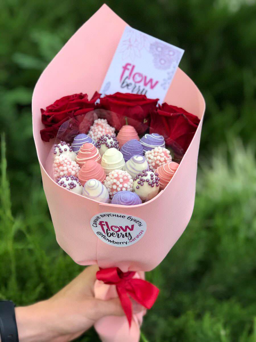 Сестренка в восторге! ???...Оформляла заказ клубничного букета на сайте, мне профессионально помогли с выбором букета для сестренки!